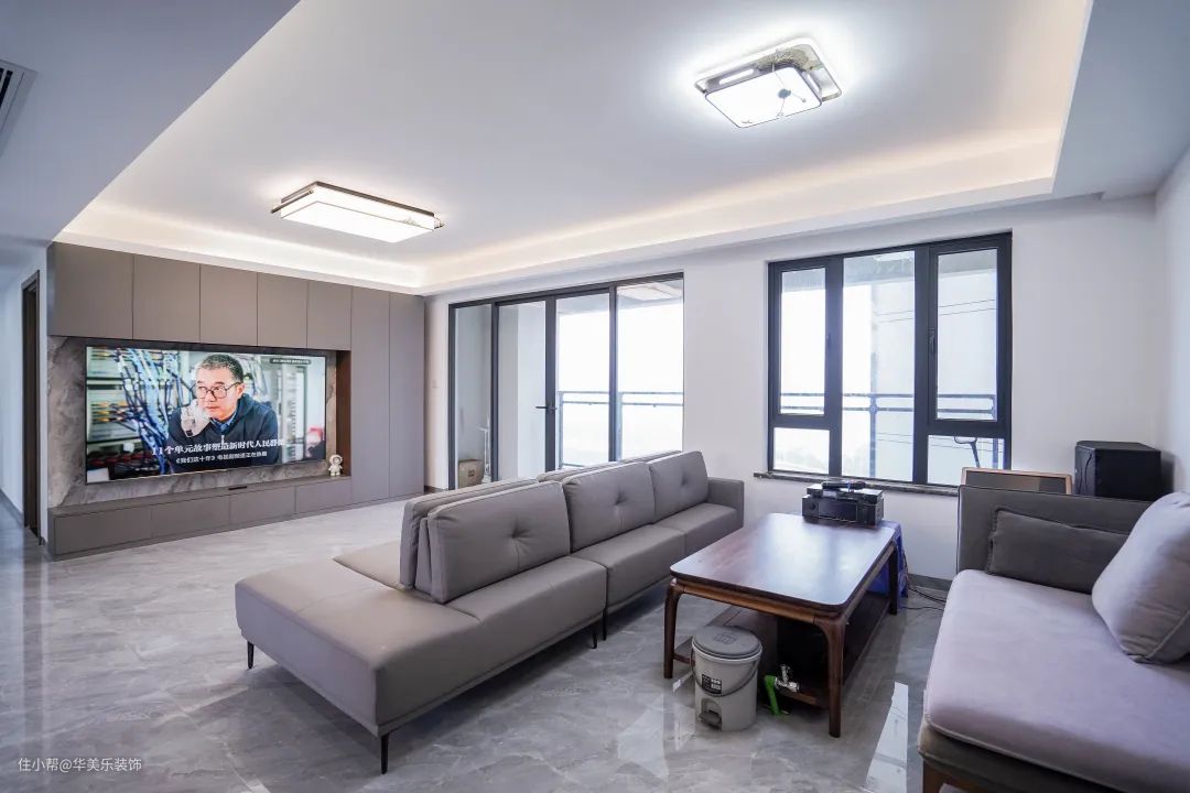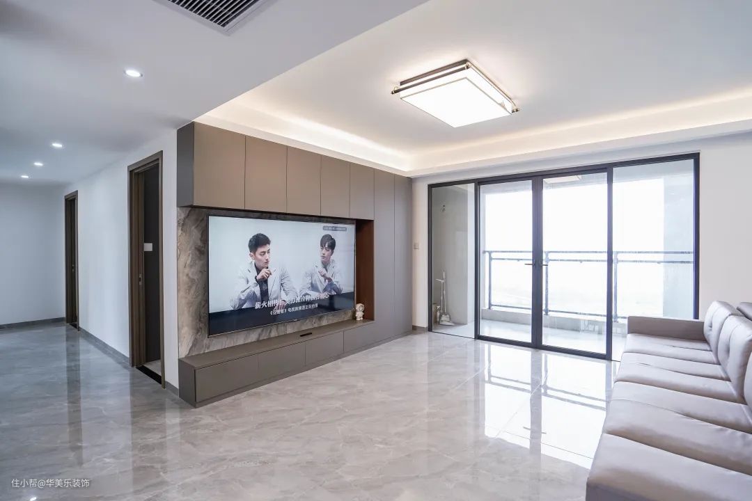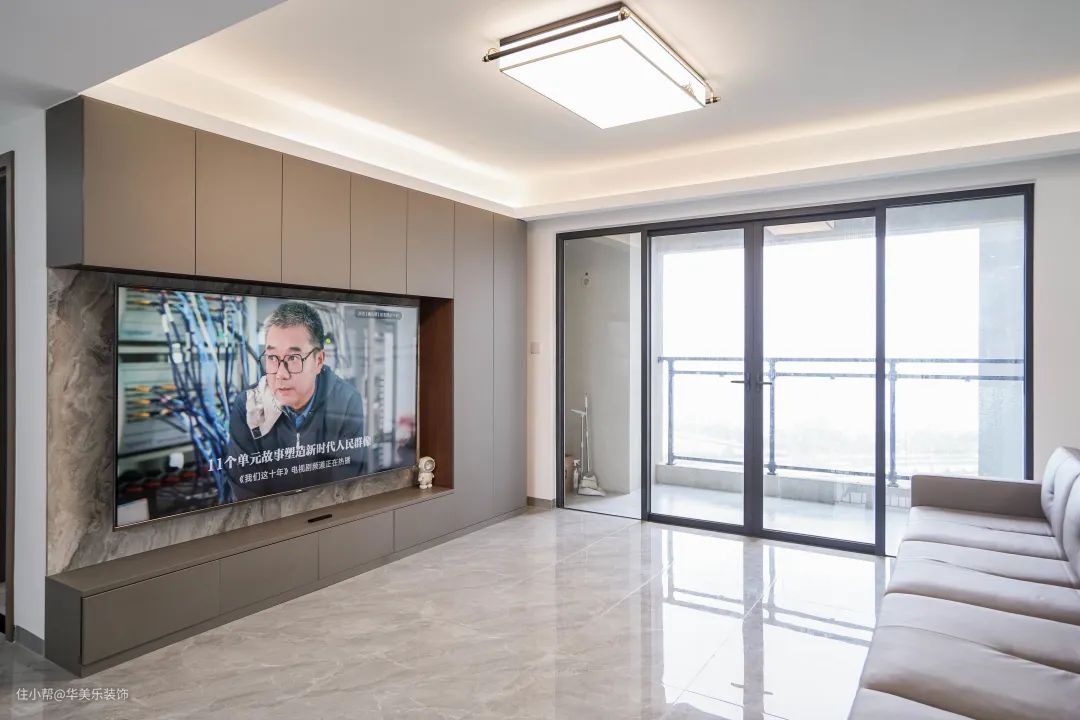 4、因为业主对于客厅收纳的需求,我们定做了电视收纳墙,不仅有现代气息,还整洁干净利落。