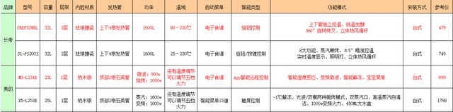 说完了这10款不同方式安装的蒸烤一体机,再分享4款性价比较高的烤箱,还有它们的功能参数分析表供参考;