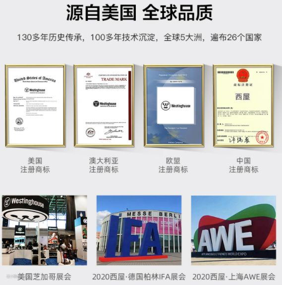 始创于1886年,迄今已经135年历史的美国大品牌西屋,不仅仅是百年世纪老品牌同时也是世界500强企业之一,在全球的消费者当中有相当高的认可度。