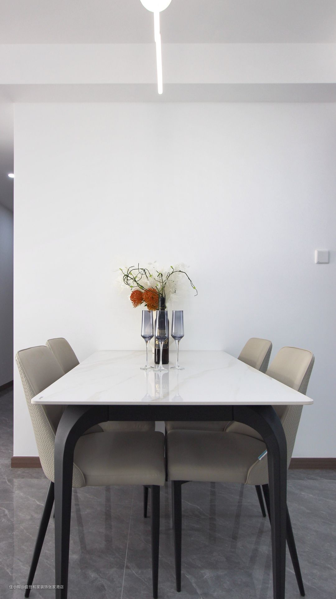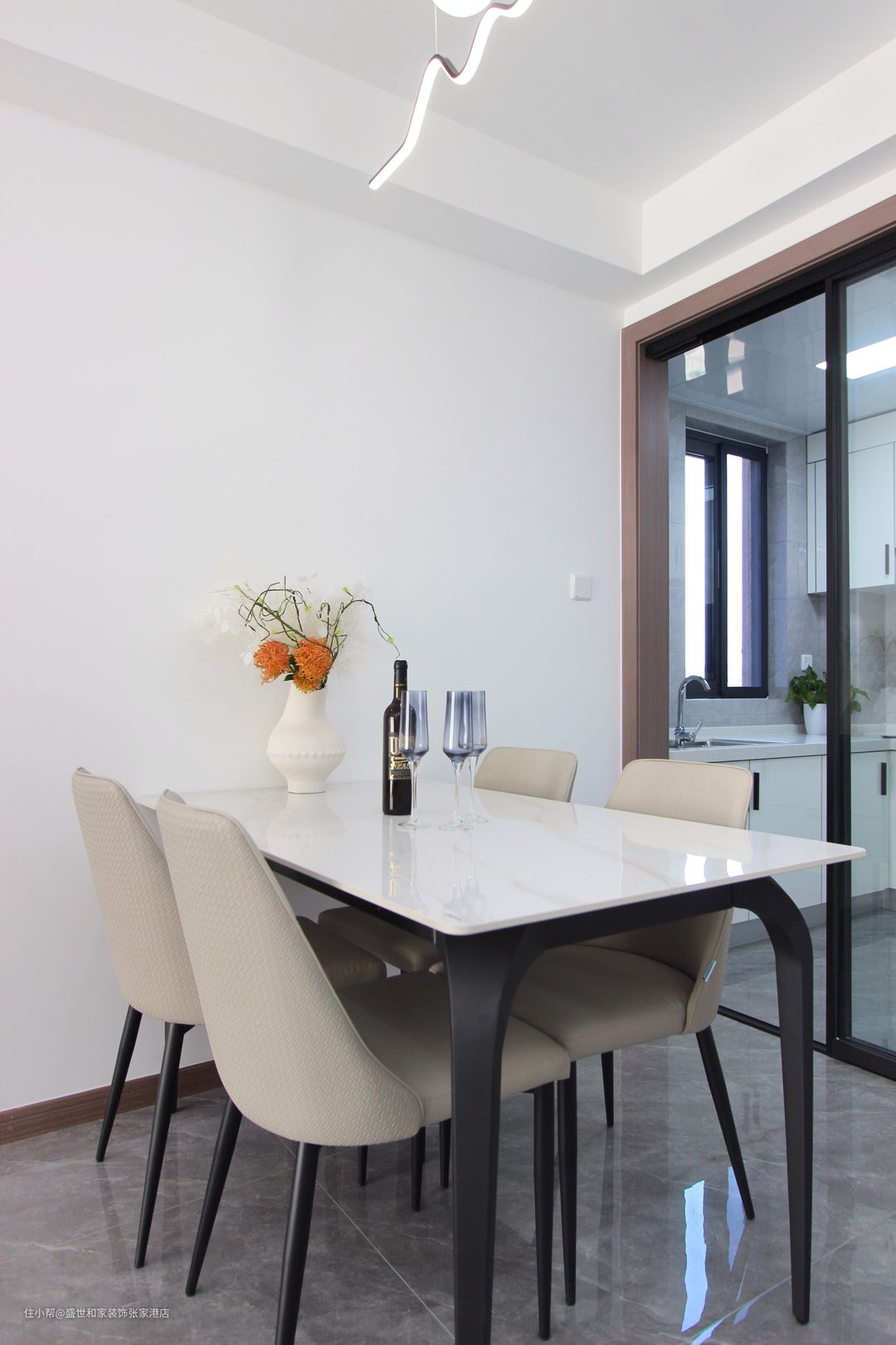 餐厅墙面并没有做过多的装饰,以大量留白为基调,反而显得很清爽。