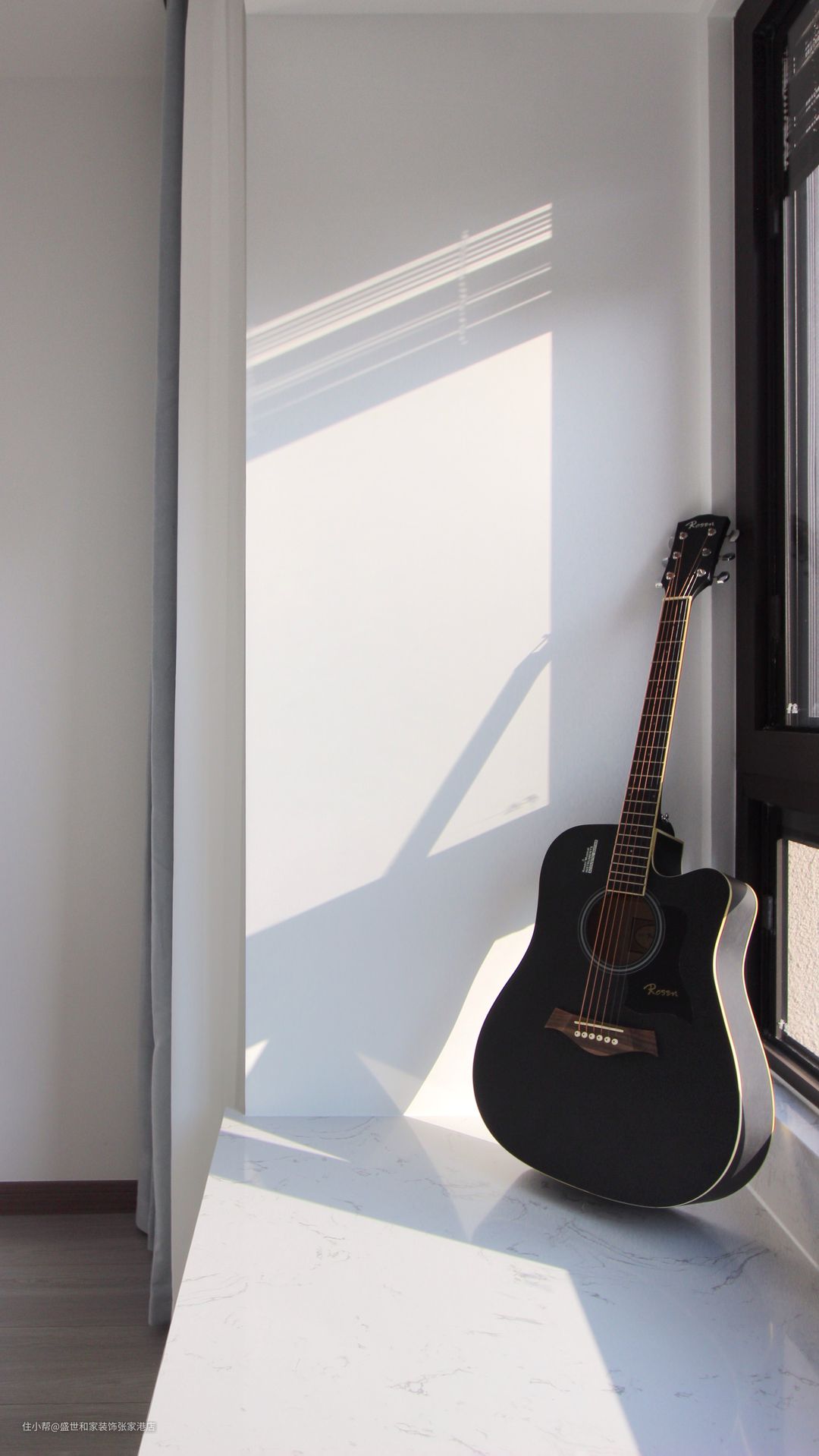 飘窗给主卧空间带来了充足的自然光线,让整个空间显得更加明亮宽敞。在角落放置了吉他,空闲地时候可以弹吉他,体现出居者生活的品味与爱好。