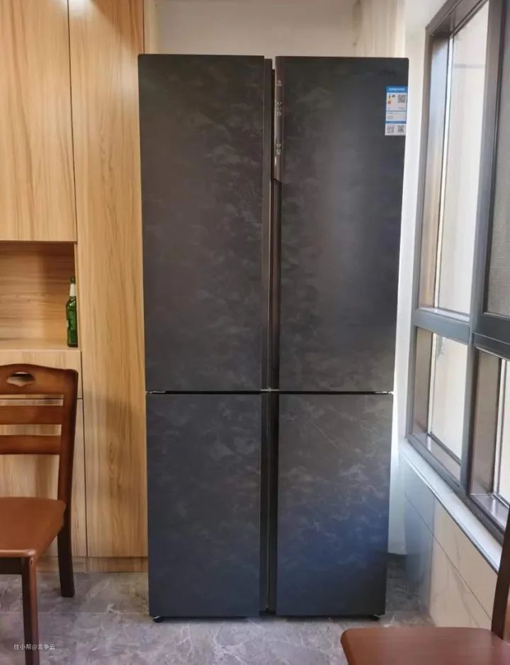 美菱508WQ5S的面板,采用云母岩石原石, 表面做了大理石的纹理,很有质感。搭配深灰色,不仅看起来档次高,而且很容易打理。