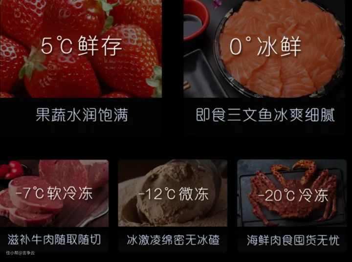 还有恒温微冻区域,肉类可以放一个多月,保持微冻状态,不串味,取出不用解冻直接切,下面会详细讲到。