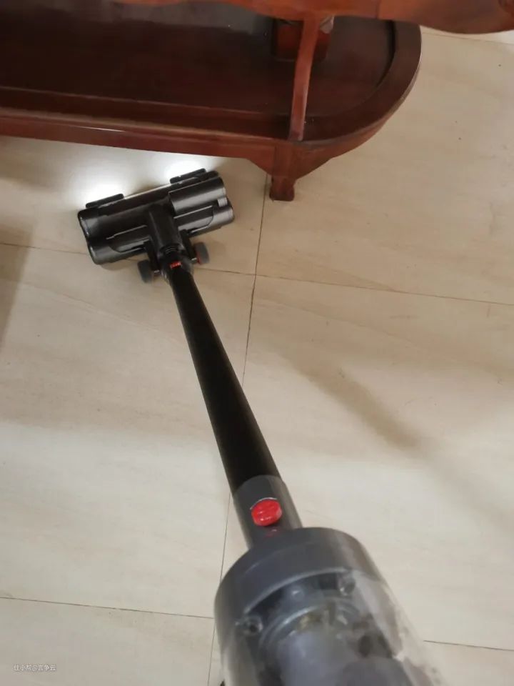 如果家里有地毯不好清洁的,可以换上双滚电动地刷,各种不同的地板和地毯都能清洁,不需要频繁更换刷头。还配了LED探照灯,就算是餐桌底下也能让灰尘无处可逃。
