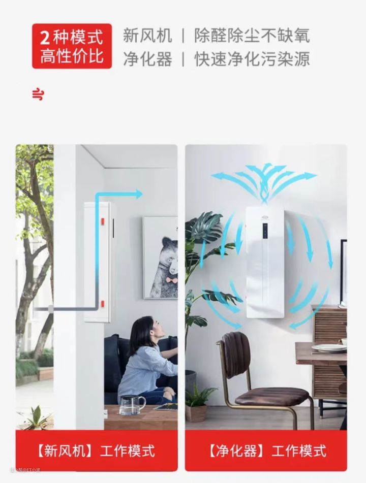 特别符合精致女性对产品颜值的需求,它的外型设计还获得过德国IF大奖,完全百搭各种各样的装修风格。更主要的是它是属于壁挂式新风,还不占用地面空间的哦!