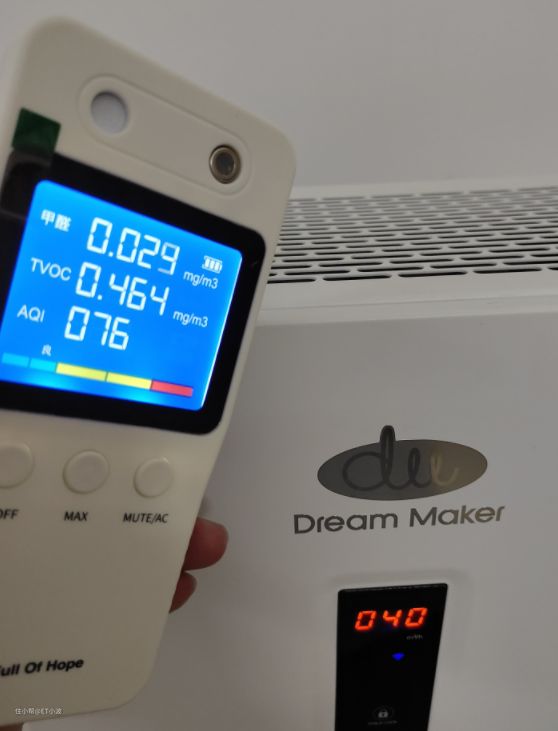 开启造梦者,以最小的风量进行测试,在出风口处测试,显示的是良。测试过程中,能够很明显的感觉到没有刺激的香味,空气清新度瞬间提升。