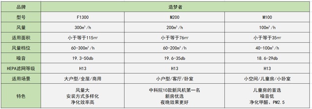 回归主题,在新风机的推荐上,我力荐大家选择造梦者旗下的产品,特别是F1300、M200这两款。