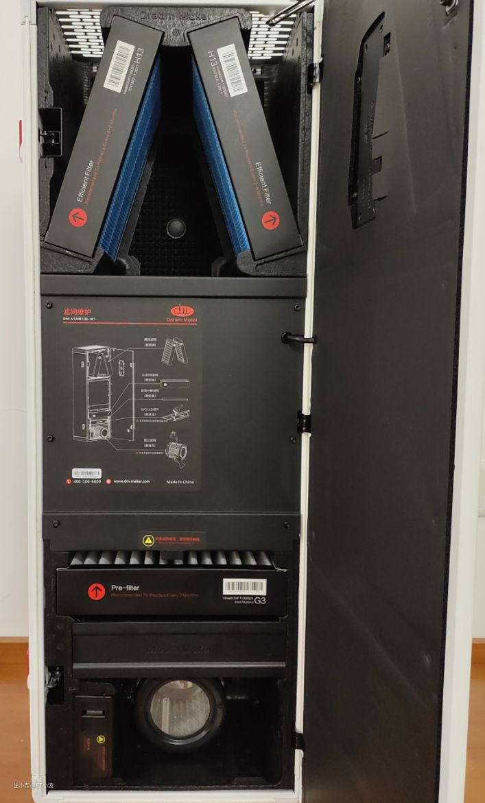 打开整个空气净化器内腔,可以看到它的结构是非常精密瓷实的,单看滤网的高度,就着实让我惊了一下,空气净化器可是与之无法比拟的!