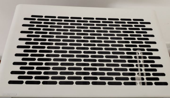它的出风口设置在了顶部,而且几乎整个顶部都是用来出风的,这点就足以让我相信它的出风量了,主要是在顶部,小孩子也不容易触碰到、也比较安全!关键是孔洞设计的也比较小,可以有效的防止异物的掉落。