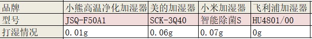这一回合表现最好的是飞利浦,因为它是无雾加湿器,所以基本没有周围的水雾产生。而有雾加湿器是无法避免水汽情况的,只是多少量的区别。