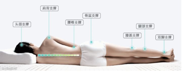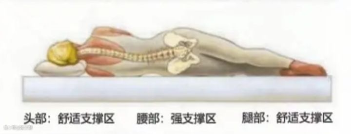 最早的时候,分区是老美捣鼓出来的,毕竟老美胖子多,普通床垫撑不住,但是老美搞出了个三分区床垫,专门撑住胖子们最重的部位——屁股。再加上肩和腿,这样就能让胖子们躺下也能保持脊柱生理曲线的放松,不会因为屁股太重而造成腰背无意识使劲而疲劳,睡眠质量就更好了。