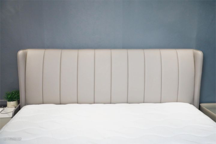 整个床头软靠是极其接近真皮沙发的触感,非常饱满而蓬松,靠上去之后可以很好地适应头颈与腰背的不同压力,让自己舒缓放松。