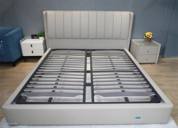 当然,掀开之后,你会发现这张床的另一个优点,就是它的用料真的很足啊。你可以注意下它的床架结构——采用了俄罗斯落叶松加固床框+整装排骨架,也就是说,它整体就比一般实木床更结实。不说像我这样体重不算是太夸张的人,就算是全家的体重担当来躺,我估计也不会有什么问题,毕竟它的排骨架承重可是高达250KG呢,睡两个二百斤的胖子都稳当得很。