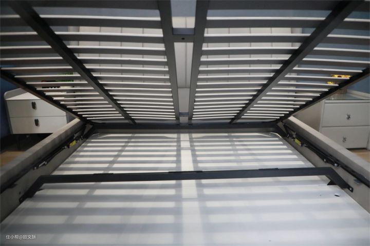来说下这款床的颜值吧,它整体造型还是比较简洁的,属于更容易搭配家居的百搭款。当然它的简洁设计,还体现在四周齐边,床体基本和床垫尺寸相当,这样的话,就不会占据过道空间,对于寸土寸金的小卧室来说更是难得。当然它还有一个气动储物款,就算是女生也能一只手掀开,床下宽敞空间可以用来储物,相当多了一个四门衣柜。