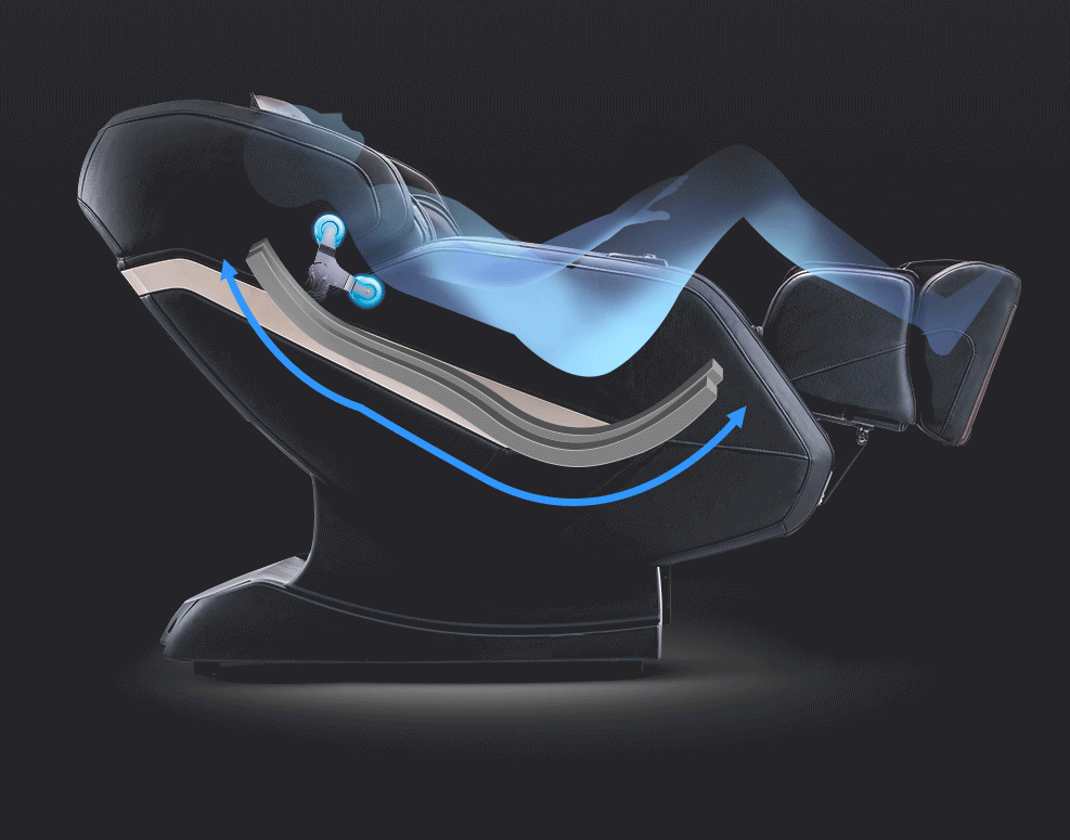 我们的躯干主要依靠机芯搭配导轨来按摩,而其余部位比如四肢,则靠气囊来辅助。