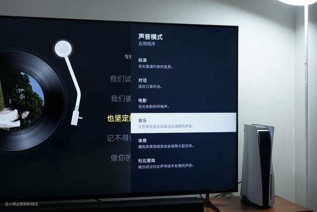 在声音模式中,也是有专门的选项可以设置,包括标准、对话、电影、音乐、体育、杜比音效。
