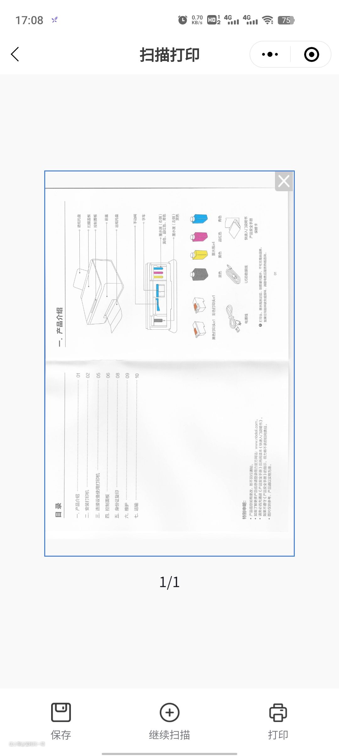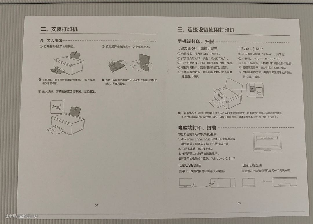 除了打印,得力L511W还可以复印文件、文档扫描,只要按下机器的控制面板黑白复印,彩色复印的按钮就会自动复印了,下面看看我复印的得力说明书的效果吧!