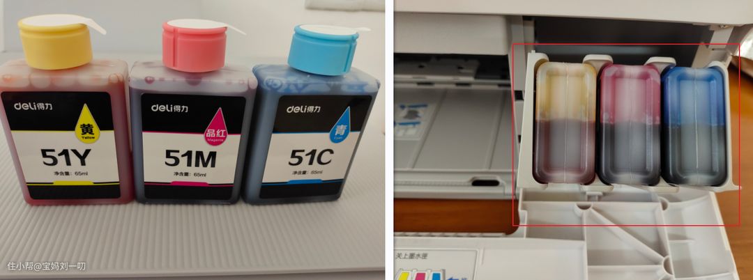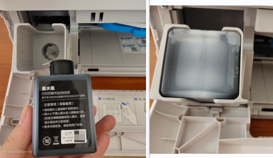 这个即插式的墨瓶设计我也特别喜欢。只要轻轻一插,便可以轻松打印,操作非常简单。我还特意反复试了几次插拔墨水瓶,都没有漏出墨水的情况,不用担心换墨时会弄脏手。