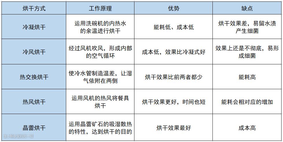烘干的方式也有很多种,我直接整理成了一张表格方便大家的对比参考: