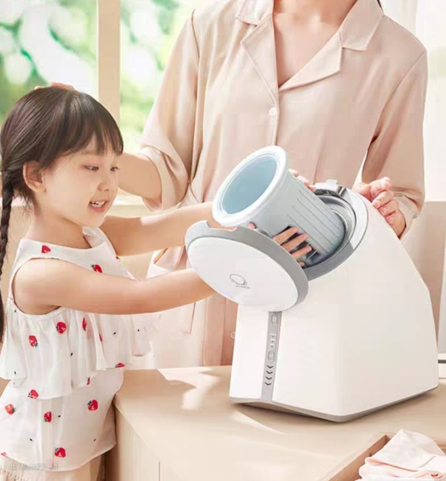 同时做到了折叠设计的新突破,可以无需安装在客厅洗手间阳台都能够使用,随用随收,不占任何空间。出差旅游时也可以放在旅行箱里面,全程洁净,陪伴左右。不过遗憾的是,他的空间相对较小,每次只能洗最多两条小毛巾的衣物,对于人口多一点的家庭来说不太适用。