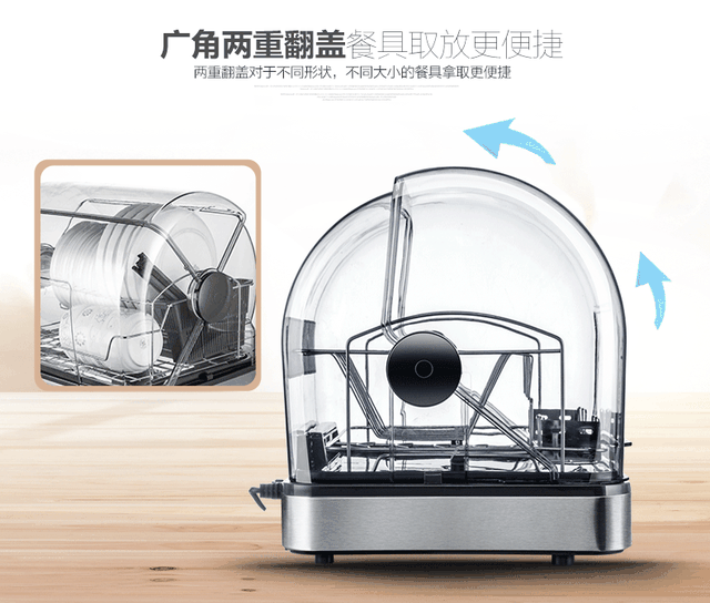 台式消毒柜:体积和容积都比较小,方便摆放在桌子上,也不占地方,和烤箱差不多,适合成员较少或者空间不大的家庭使用;
