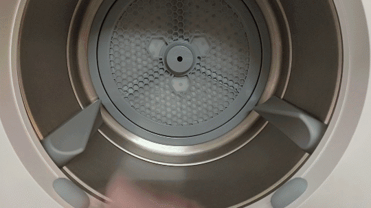 这就是我前面所说到的新颖设计之一了,此前我所见过的小型烘干机内筒都是水平放置的,烘干机放太高不方便调节,顶部按钮放太低的话,拿取衣服时又需要弯着腰去查看里面的情况,非常难受。