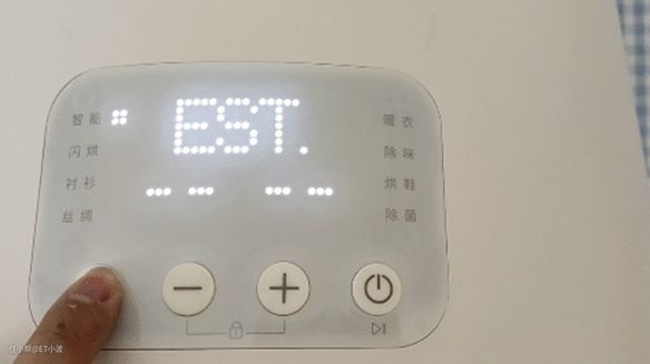 烘干机一共有八个程序可以调节,四个按钮,可以用来控制时间和模式,操作很简单。我个人认为,按钮式操控比旋钮和触控更加方便精准一点: