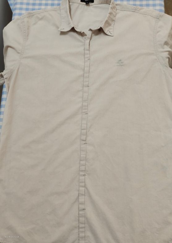这件衬衫是我经常穿的,刚从洗衣机里拿出来的褶皱情况是这样的: