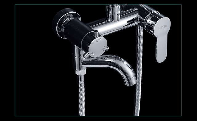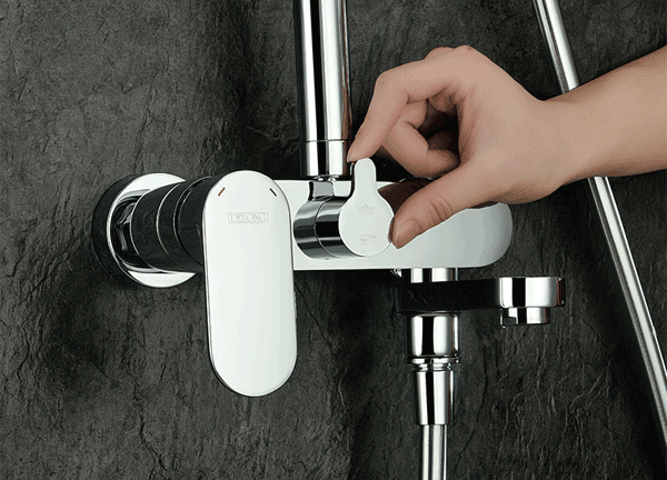 每个家用花洒都会配置一个龙头,设有下出水模式。其基本构造就是龙头主体、分水器和手柄(有些还用旋钮、按键),通过小小龙头的调节,使用者可以轻松选择使用顶喷花洒、手持花洒还是下出水模式。分水器的内部设有一个阀芯,阀芯的材质很大程度地影响了花洒是否耐用,目前市面上基本都是陶瓷材质的,使用寿命很长。