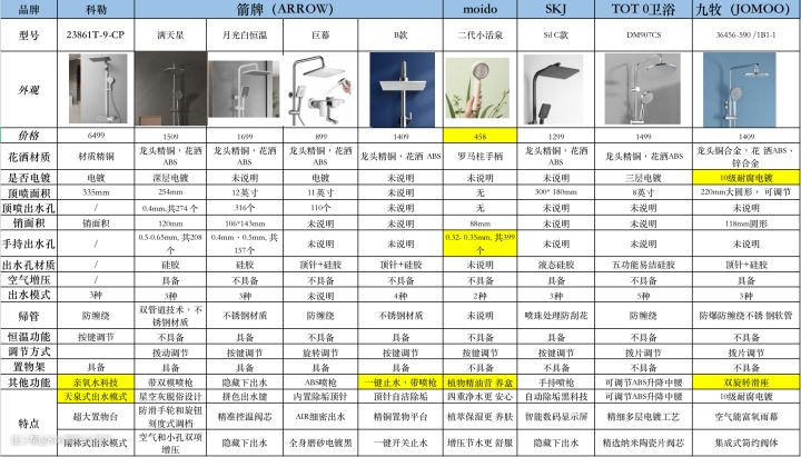 之前写过一篇关于花洒的选购干货文,很多朋友都私信我,让我持续更新。打工人kiki抽时间把市面上热门的型号整成表格了,希望能够帮到大家