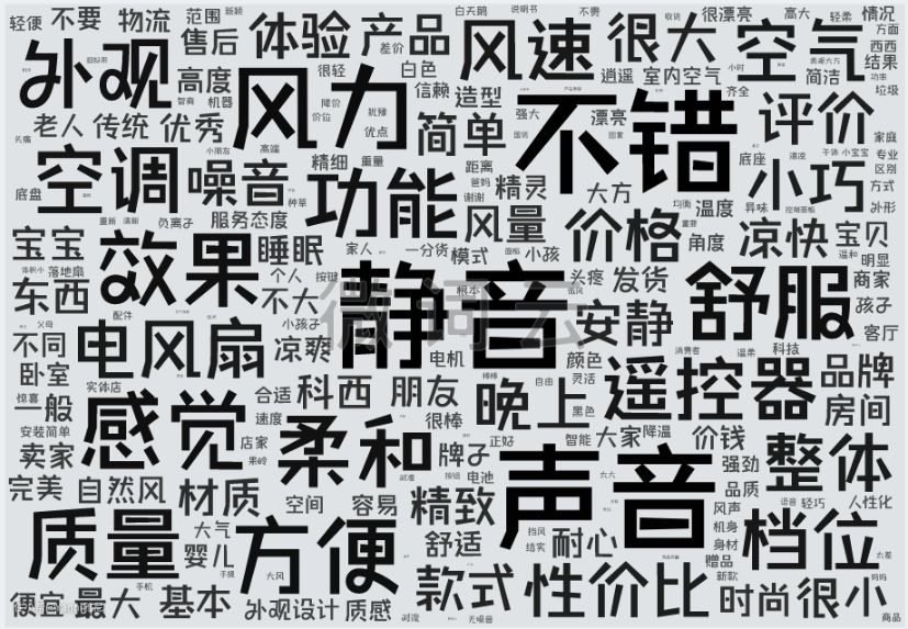 没换风扇之前对家里的老式风扇真的是又爱又恨,吹久了难受但不吹又太热。但又觉得某森那种贵价风扇像是智商税,于是把主要销量高的风扇评论都爬了下来,用工具做了词云表对比,发现循环扇满足了我对风扇所有的期待:风力足、吹久不头疼、静音!
