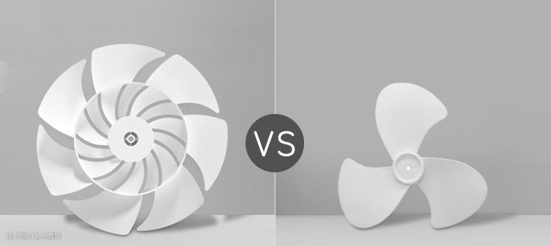 同时需要考虑扇叶是否具备特殊性:空气循环扇之所以能够产生圆柱形风域和自然风(果岭风、海风、山岭风等)的风感,离不开其特殊的扇叶形状,若是不具备左图这样的扇叶,则不是空气循环扇,只是普通的直流风扇。