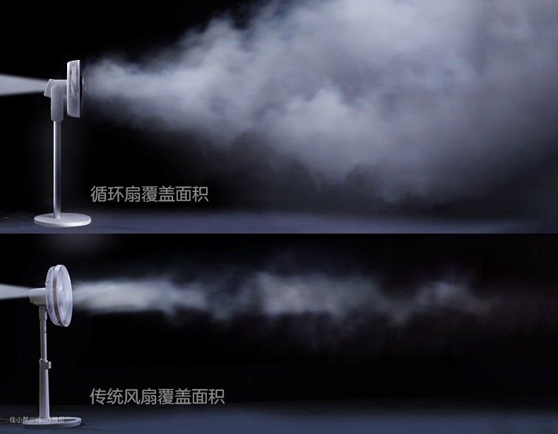 循环扇的风送风范围更广,风很自然柔和,不会像传统风扇那样风是直吹集中吹,吹久了难受。