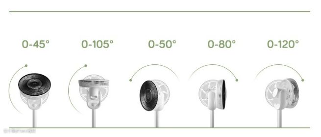 另外一个就是空气循环扇的摇头角度也比较重要,一般在宽敞的空间使用风扇,自然是旋转角度越大的风扇为好,这样可以加快该空间的空气流通速度,也可以因为旋转摆动的幅度越大,风扇可吹到的面积也就更大,一般情况下,风扇旋转的角度为100度,俯仰的角度约为30度。
