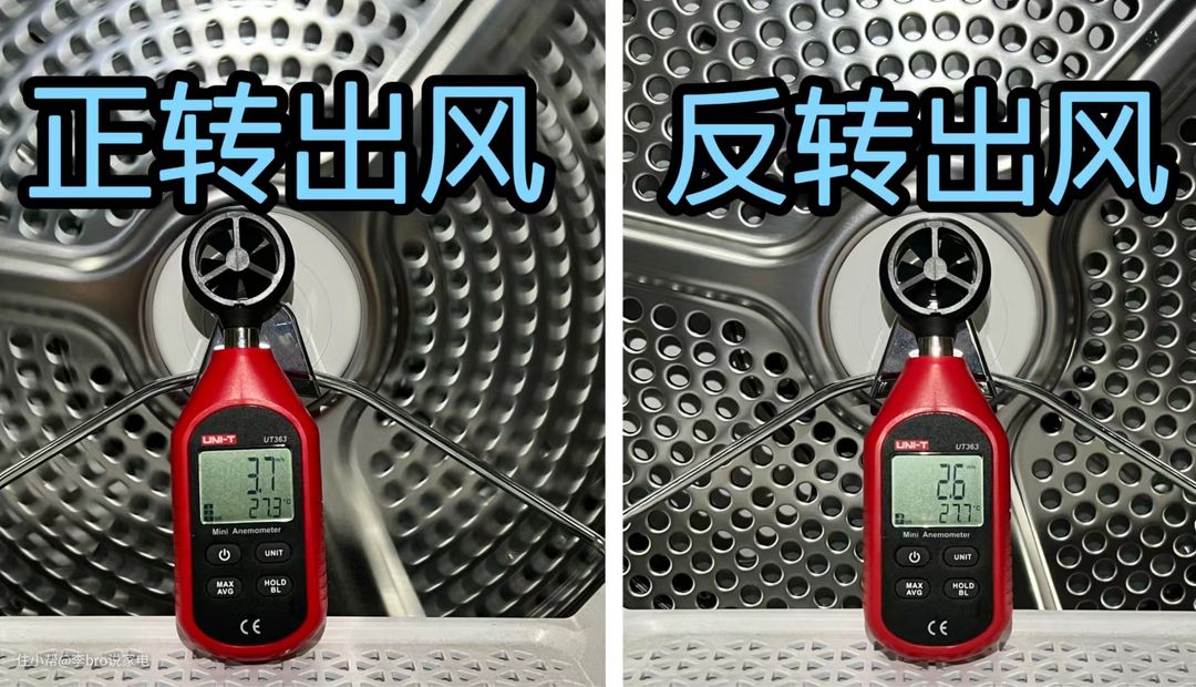 这就是单电机结构中,内筒反转时是不出风的,长时间反转不出风热量就会堆积不散,从而影响机器内部的风路循环,最终烘干效率低下,烘干效果不好。