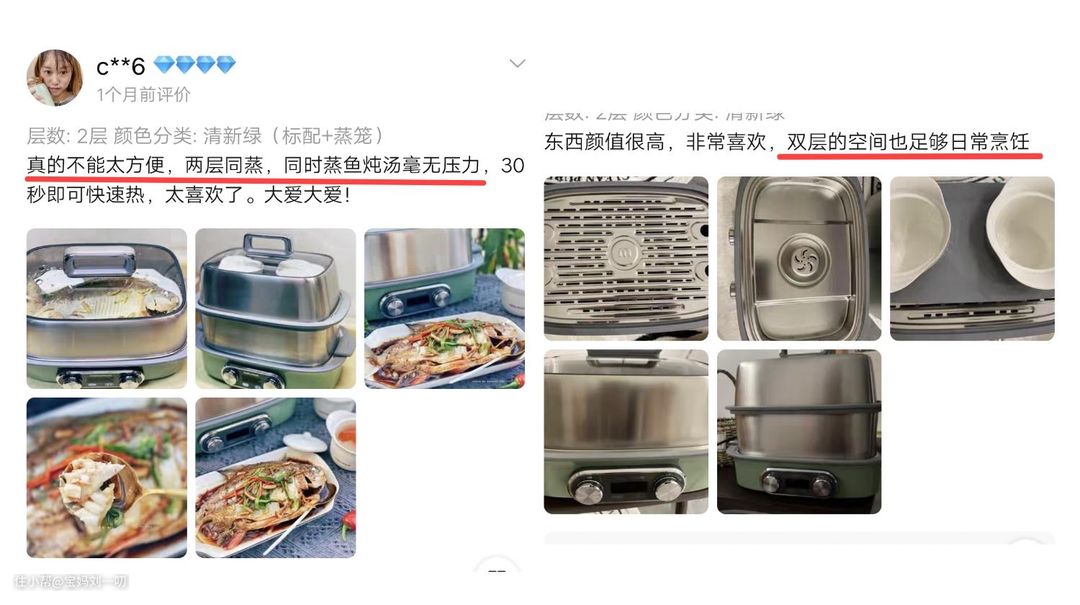 “双层空间,同时蒸炖,非常方便,足够日常烹饪”