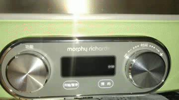 它的操作方式就设置在锅体的正前方,选用了高清LED的界面,操作起来很清晰,双旋钮+触控的操控方式,左边是烹饪模式选择,右边是时间调节选择,使用的时候阻尼感与手感都非常好,体验起来很舒适、很简单,家里有老人的也能很快学上手。