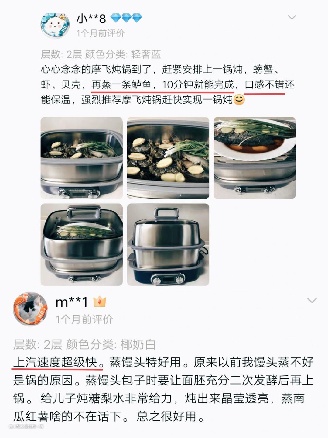 另外摩飞极速电蒸锅还配送了定制的陶瓷锅具↓(ps:大促期间购买的用户才会有配送定制锅具哦~)