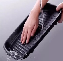 外层是食品级的陶瓷釉涂层,不粘锅、耐用性强、安全性高,让烤盘显得更光亮,而且清洗起来相当方便,用水冲即可干净