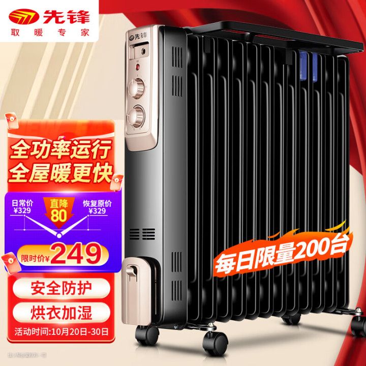 推荐理由:先锋其实也是国内电器领域的领军品牌,他家垂直做两季产品,夏季和冬季,产品出口国外已经长达二十多年了,夏天的风扇冬天的取暖器,这两类产品品控做的一直都很用心。这款拥有13片油汀叶片,所以适合最高20㎡的大面积空间使用。