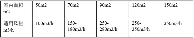 为了方便大家根据自己的室内面积选购合适的新风机,可以参考下面的表格: