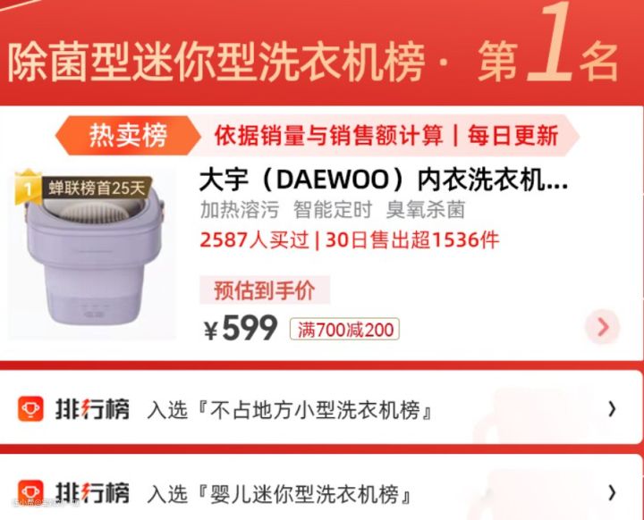 1、大宇折叠内衣洗衣机