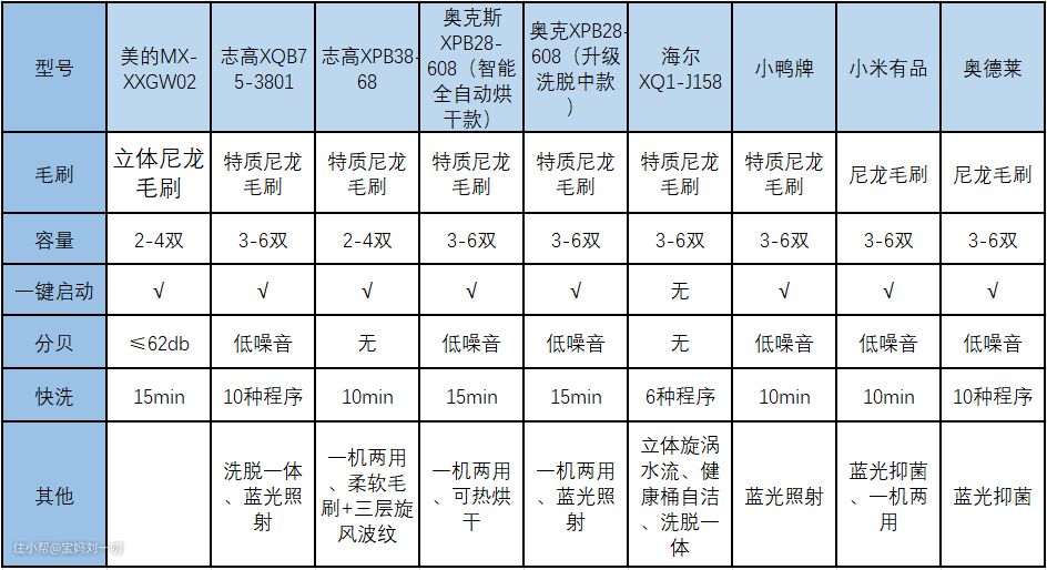 奥克斯两款对比:这两款,第一款带有热风烘干功能以及一键洗涤功能,第二款能够一机两用,同时还带有360°UV蓝光照射,洗鞋同时还能进行蓝光抑菌。