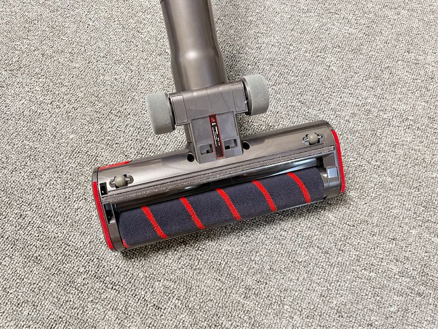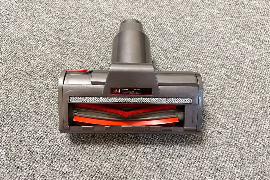 刷头采用了V字型毛刷+胶条设计,清洁时,刷头会对物体表面先进行拍打,将灰尘螨虫等拍离,然后通过电机的大吸力,将其清理干净。