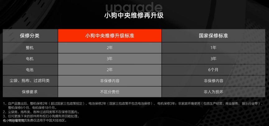 他们家的中央维修模式简单粗暴:保修期内人为损坏照样免费修,不区分责任;整个过程中产生的双向物流费、维修费、零部件费等一切费用由小狗承担;一切解释权归用户所有。