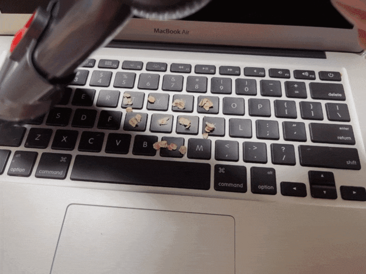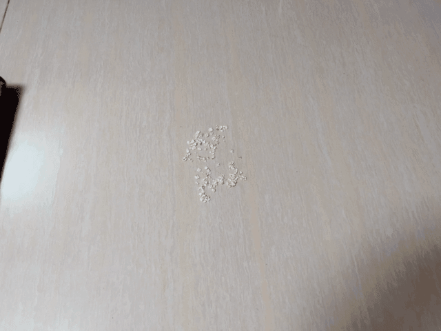 由于螨虫看不见,所以找了一些土豆淀粉来模拟除螨测试,先把淀粉压实,效果非常明显,可以看到淀粉一瞬间就被吸光光了: