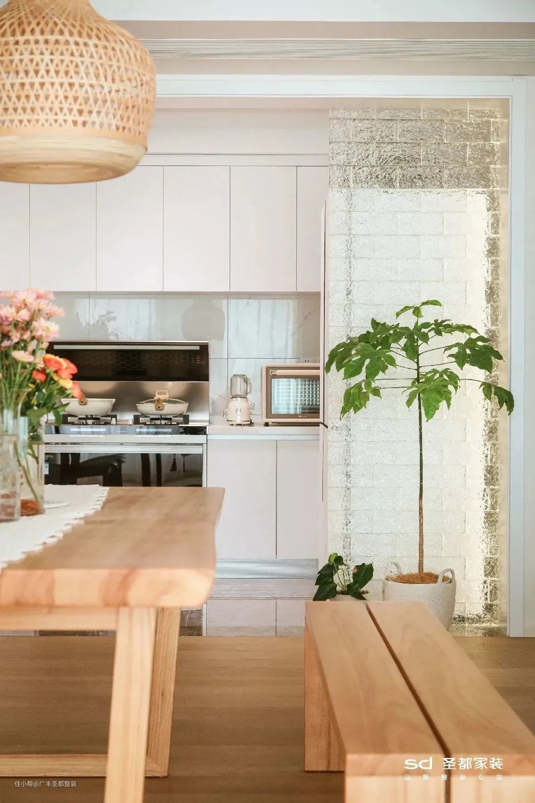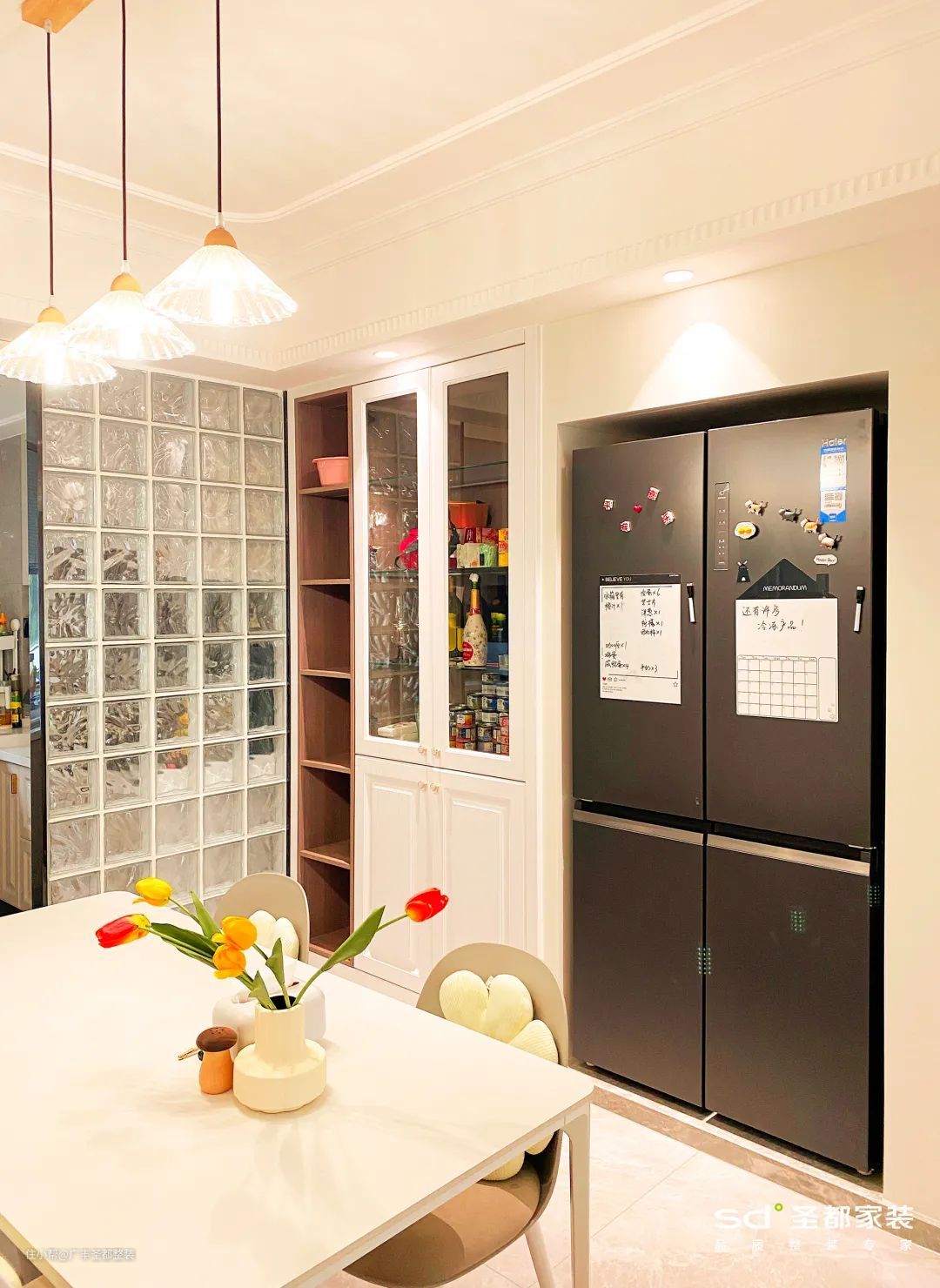 通透的玻璃砖澄澈而美好,更能突出奶油风清爽的画面感。