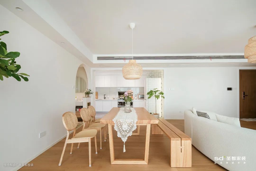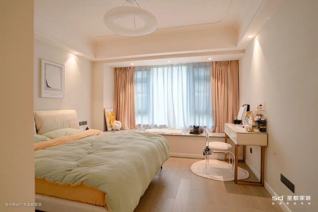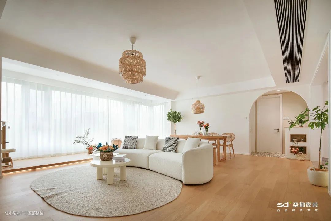 奶油风家居总能给人以包裹感和治愈力,这是因为它非常注重空间的柔和度。