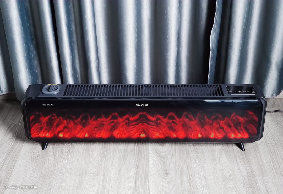 先来简单说说这次先锋暖立方取暖器的外观设计,前面板采用的是亮面黑色设计,主要用于配合其仿真炭火功能。