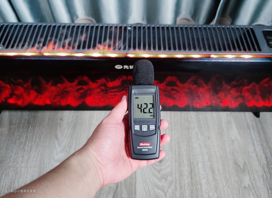 在开启最大制热功率的情况下,测得整机的噪音为42.2dB,这个噪音控制可以说很厉害了。放在房间里,晚上睡觉休息也基本不会被影响到。